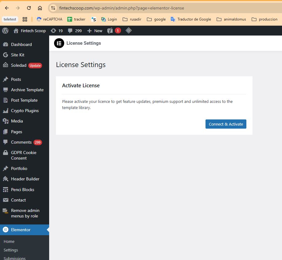 I have activated your licence in the new site (https://www.fintechscoop.com/) but Elementor indicates that there is an error with its license. How can I resolve it?