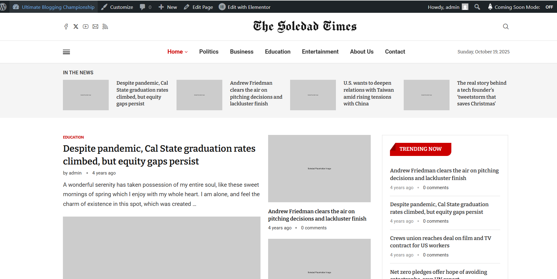I recently purchased the Soledad theme. Initially, I wanted to work with WPBakery (Visual Composer), but I’ve now decided to use Elementor instead, as I believe it’s more powerful and has a better future.