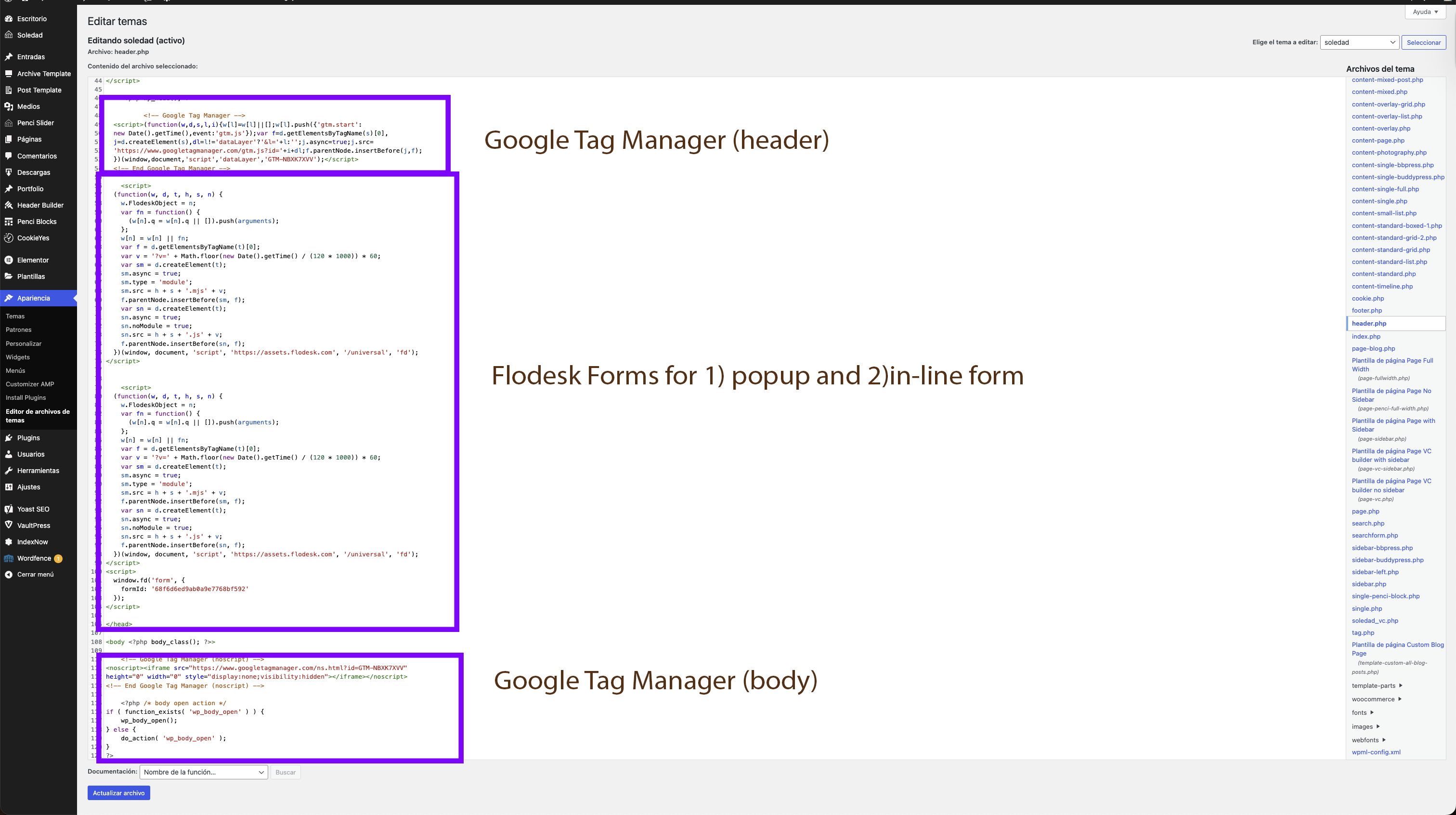 Asking because I think I recall once you told me that if Soledad had new core update whatever I had there in the heasder.php from the Theme Files Editor, will be deleted, so wondering if there is a specific better way to insert the header scripts or codes like this pop up one from Flodesk or the Google Tag Manager without doing it directly on the Theme Files Editor so they don't get deleted with updates.