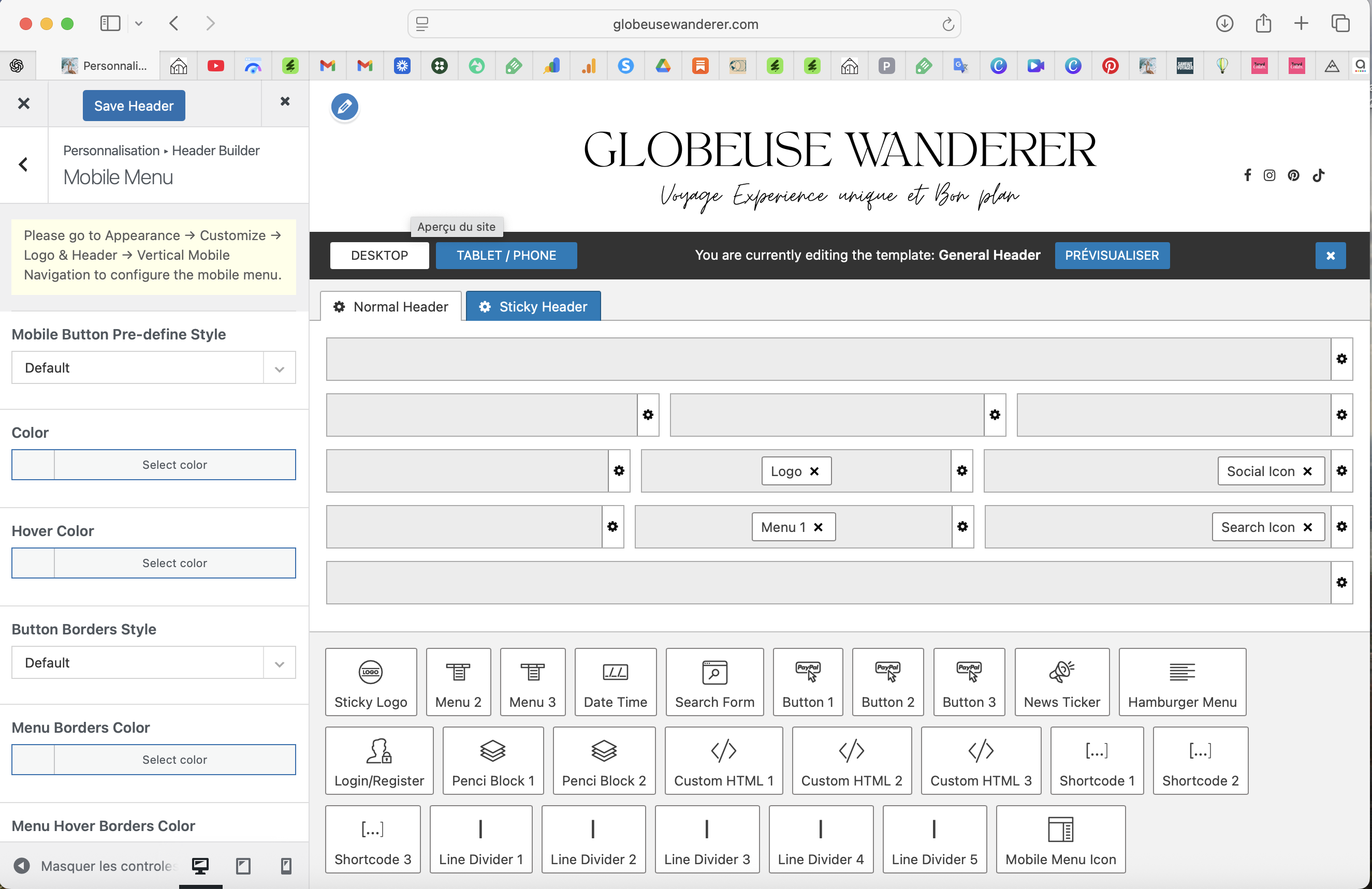 Thank you so much, I managed to do it. Now my problem is that I can't get a menu bar on the tablet. Currently, I have a hamburger menu, whereas I want the same display as on the desktop. In the header elements, I don't have menu 1, menu 2, and menu 3 like on the desktop. Can you help me?