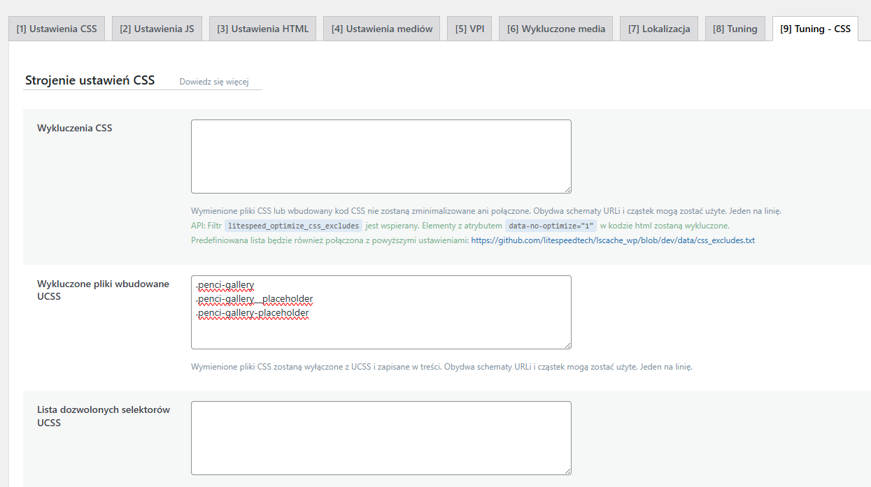 In the Lite Speed Cache plugin - "LiteSpeed Cache Page Optimization," in the "Excluded UCSS embedded files" field, I entered: .penci-gallery .penci-gallery__placeholder .penci-gallery-placeholder