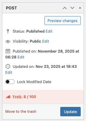 Comments anacatnog started the conversation2 hours agoHello,I want to display the post published date on some widgets, but the date that is being displayed is the updated date and not the published date.Since I write several posts on the same day and schedule their publication, it makes no sense. All those posts get the same date...How can I always show the published date of my posts?Thank you. Regards,Catarina N.Attached files: Screenshot 2025-11-28 at 18.19.17.png Screenshot 2025-11-28 at 18.20.53.png Sign in to reply ...