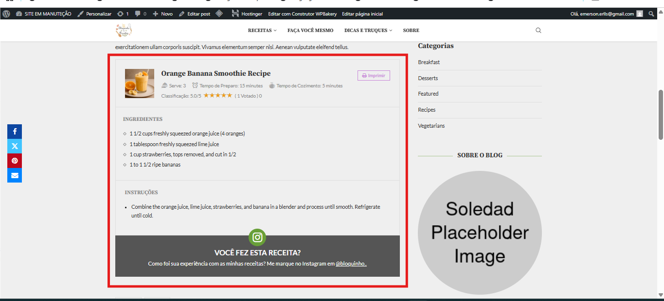 Comments emersonerlls1 started the conversation13 hours agoWhen I create a new post, some things from the Theme don't appear in the post; this part of the red square in the image doesn't appear in new posts, as shown in the image New Post.png.Attached files: image retangulo.png New Post.png 3,056PenciDesign replied11 hours agoHi, For the recipe content, please follow the detailed instructions in the document at this link: https://soledad.pencidesign.net/soledad-document/#recipe Regards,PenciDesign.emersonerlls1 replied10 hours agoThanks. Sign in to reply ...
